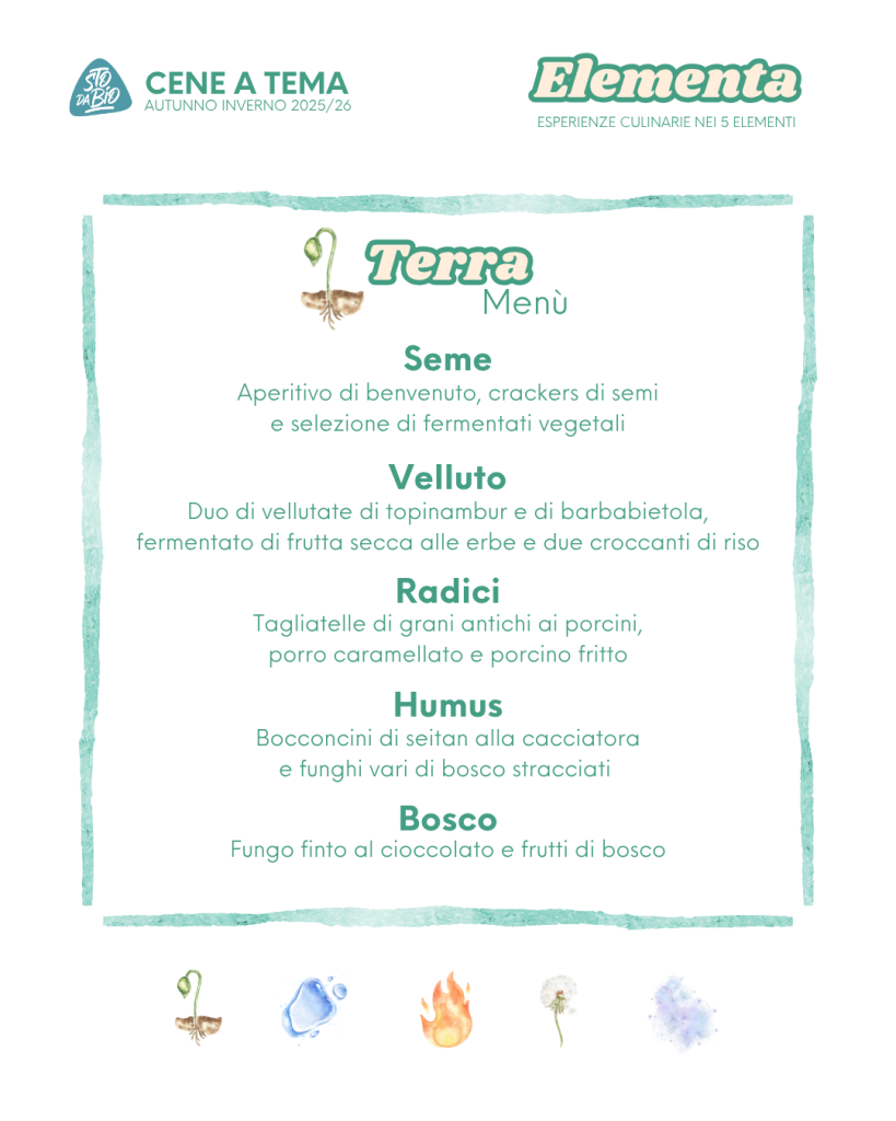 Ogni serata un’esperienza unica: piatti vegetali creativi, atmosfere dedicate e riflessioni sul legame profondo tra l’essere umano e gli elementi che lo nutrono.
